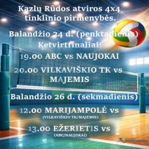 Šeštadienį, balandžio 18 d., baigėsi Kazlų Rūdos atvirų 4x4 tinklinio pirmenybių reguliarusis sezonas, po kurio paaiškėjo atkrintamųjų, ketvirtfinalių, pusfinalių komandos dalyvės, kurios toliau tęs kovas...
