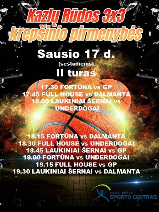 Kazlų Rūdos 3×3 krepšinio pirmenybės. II turas + Pridėti į Google kalendorių + iCal / Outlook kalendorius Data 2026-01-17 Pasibaigęs Laikas 17:30 - 19:15 Pasidalinti renginiu