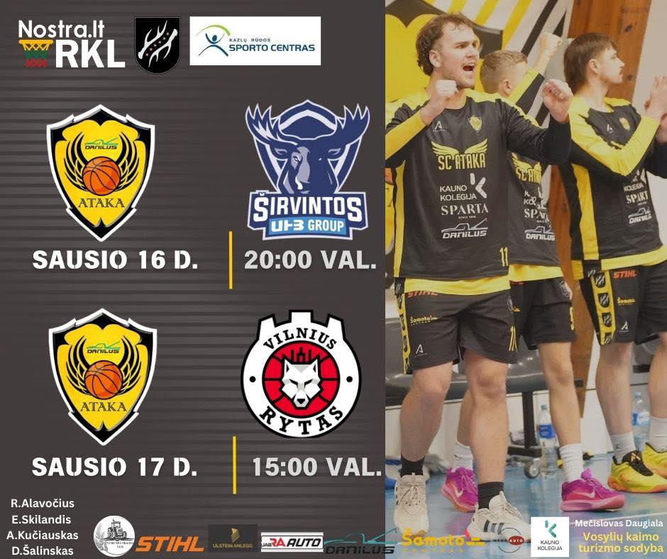 Nostra.lt-RKL „A” lygos rungtynės: Kazlų Rūdos „Ataka”-Danilus vs Vilniaus „Rytas-MRU” + Pridėti į Google kalendorių + iCal / Outlook kalendorius Data 2026-01-17 Pasibaigęs Laikas 15:00 - 17:00 Pasidalinti renginiu